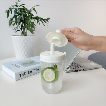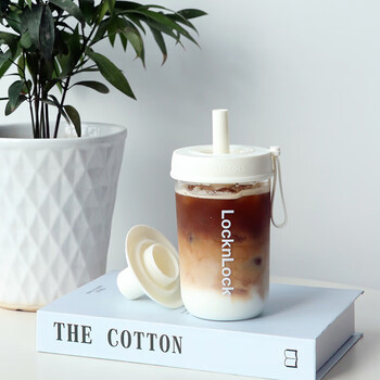 乐扣乐扣(LOCK&LOCK)夏天塑料水杯奶茶杯Tritan带吸管户外便携提手男女杯子700mL白色