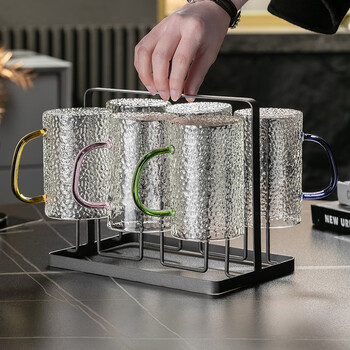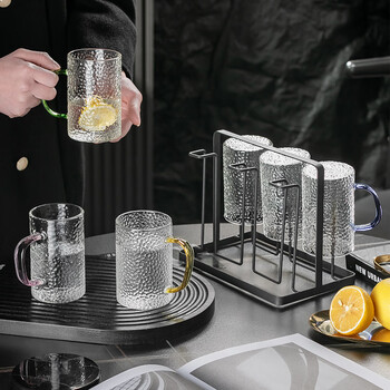 格娜斯 日式锤纹玻璃杯带把手水杯套装家用客厅待客茶杯家庭喝水杯子