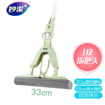 妙洁胶棉拖把33cm杆长137共1头对折式大懒人家用一拖净免手洗海绵吸水