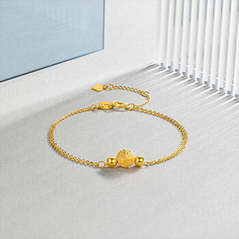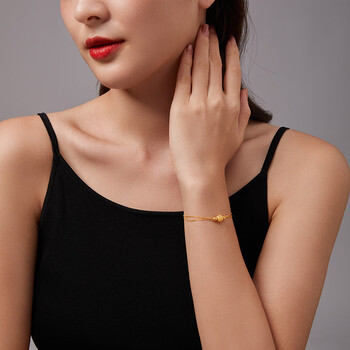 周六福5G工艺黄金手链女绣球生日礼物计价A079853 约2.47g 16+3cm