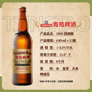 青岛啤酒(Tsingtao)经典(1903)640ml*12瓶箱啤(复古装)