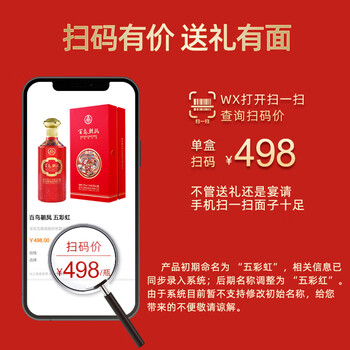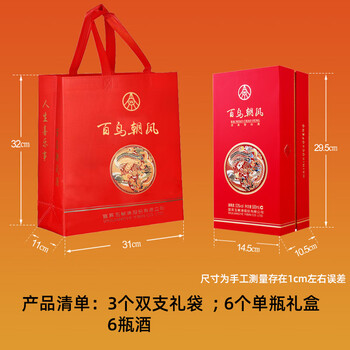 五粮液股份 百鸟朝凤五彩红浓香型白酒52度500ml*6瓶整箱装婚宴结婚喜酒