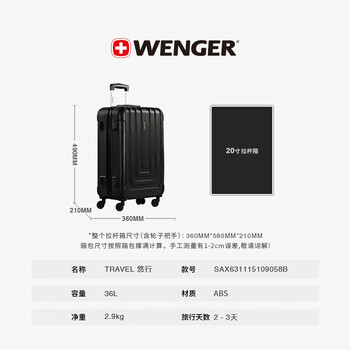 威戈行李箱20寸登机箱拉杆箱万向轮旅行箱密码箱黑色