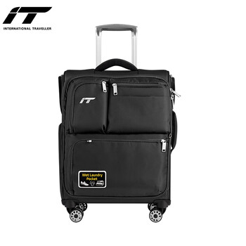 INTERNATIONAL TRAVELLER英国IT拉杆箱登机旅行箱万向轮超轻行李箱20英寸牛津布软箱1157黑