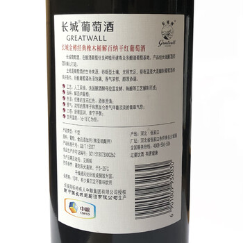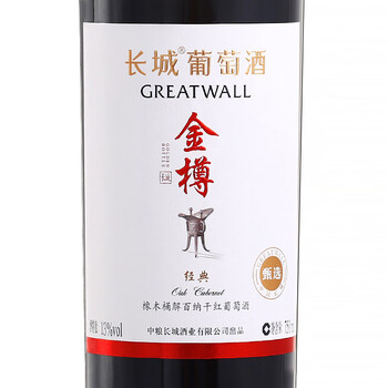长城(GreatWall)红酒 金樽系列 经典甄选橡木桶解百纳干红葡萄酒 整箱装 750ml*6瓶*1箱