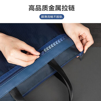 得力(deli)63777 双层大容量商务手提电脑公文包 网纱拼接加厚牛津布办公会议包事务包文件收纳包 蓝色 1个装