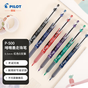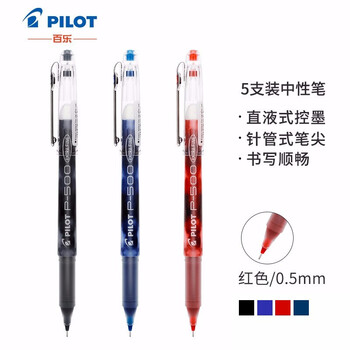 百乐(PILOT)P500针管中性笔直液式签字笔考试财务水笔走珠笔0.5mm 红色 5支装 BL-P50