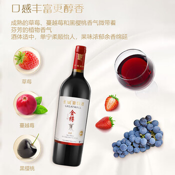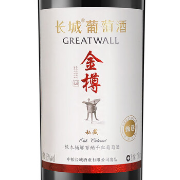 长城(GreatWall)红酒 金樽系列 私藏甄选橡木桶解百纳干红葡萄酒 圆筒整箱装 750ml*6瓶(含礼品袋)*1箱
