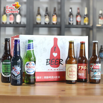Easycheers精酿啤酒组合礼盒多国24支+吧台垫 多国进口Ipa白啤黑啤 啤酒整箱