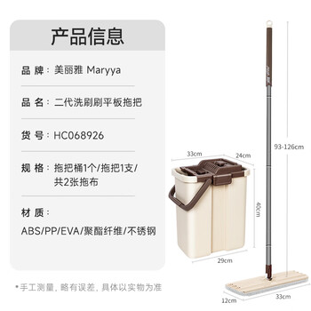 美丽雅带桶平板拖把33cm2布刮水一体三合一家用一拖净免手洗墩布神器