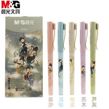 晨光(M&G)67104中性笔清新季水性笔创意时尚学生水笔0.38mm全针管签字笔 B7612梦回敦煌笔-黑色12支装