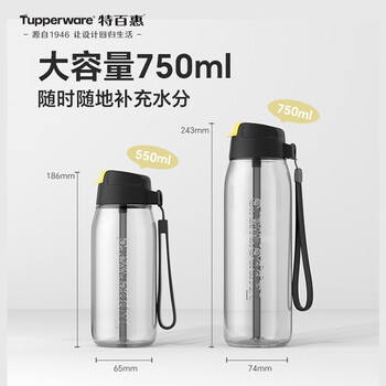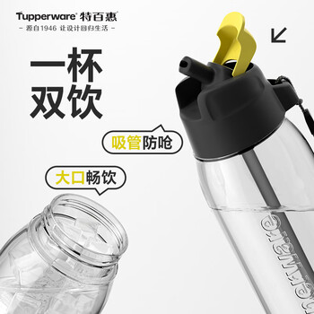 特百惠(Tupperware)乐动750ml男女士学生大容量泡茶杯运动塑料水杯子带吸管 酷炫黑