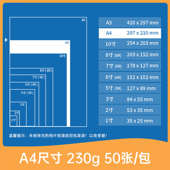 得力(deli)A4 230g双面高光照片纸 相片打印纸 50张/盒 11826