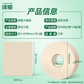 缘爱有芯大卷纸4层700克*12卷 大盘纸加厚超韧商用家用厕纸 整箱销售