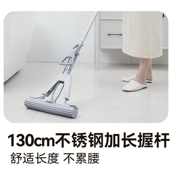 京东京造对折海绵拖把33cm杆长130胶棉吸水免手洗家用拖地神器一拖净2头