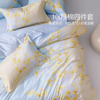 水星家纺四件套床上纯棉100%全棉床单四件套单双人被套枕套1.5米床遥叶