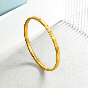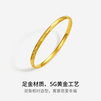 周六福5G工艺黄金手镯女相濡以沫生日礼物计价A108529 约7.66g 58mm