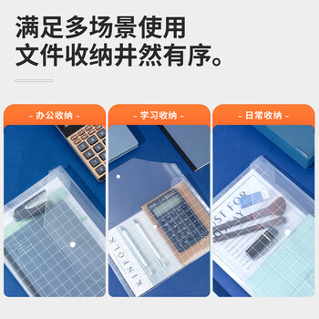 得力(deli)5501B A4透明文件袋 按扣方格纹资料袋 防水档案袋公文袋 试卷收纳分类 财务票据办公收纳 10只装