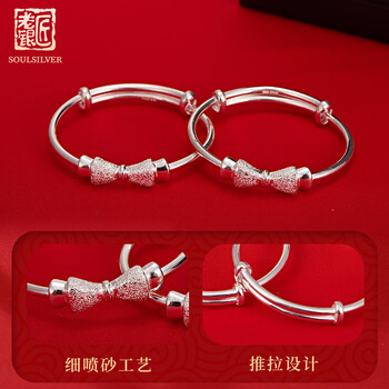 老银匠蝴蝶结宝宝银镯999足银甜美可爱满月周岁礼物新生婴儿银手镯