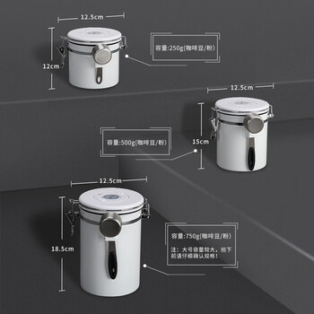 Mongdio咖啡豆密封罐304不锈钢咖啡粉保存罐单向排气储物罐含勺