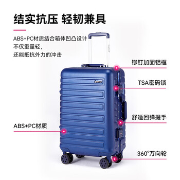 Diplomat外交官时尚铝框拉杆箱万向轮行李箱旅行箱TC-9203 蓝色 24英寸