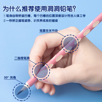 晨光文具洞洞铅笔12支HB 小学生铅笔 开学写字绘图儿童正姿矫姿 三角木杆沾顶 莫兰迪色AWP30764