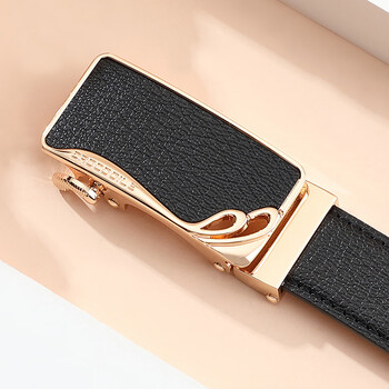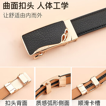 鳄鱼恤女士皮带简约牛皮自动扣腰带生日礼物送女友礼盒装2001黑色