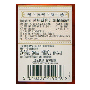 格兰(Grant's)洋酒 格兰威 苏格兰威士忌700ml(朗姆桶陈酿) *1