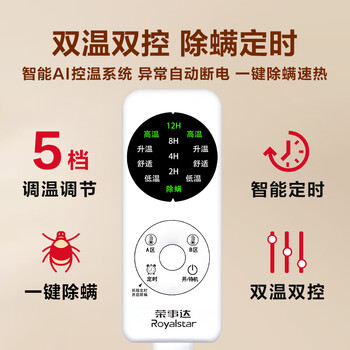 荣事达【高温断电】双人定时双温双控除螨无纺布电热毯电褥子1.8*1.5米