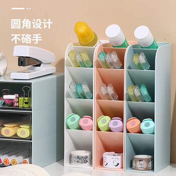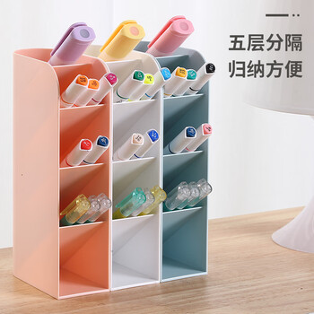 齐心(Comix)斜插式笔筒 桌面收纳创意ins风笔架多功能五格时尚可爱大容量办公 52*105*204 珊瑚粉 B2279
