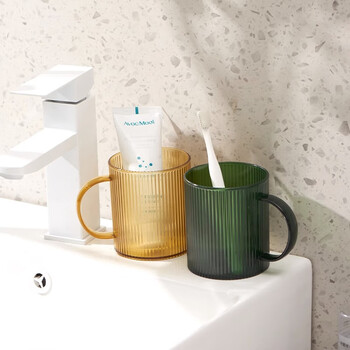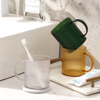 欣沁漱口杯成人儿童刷牙杯旅行便携洗漱杯加厚牙缸杯 条纹绿色