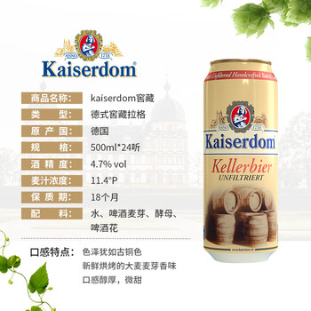Kaiserdom窖藏啤酒500ml*24听 整箱装 德国原装进口踏春送礼