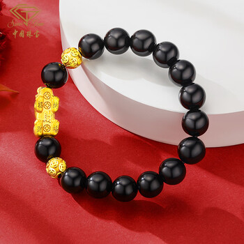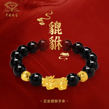 中国珠宝生日纪念生日礼物黄金貔貅手链男女款足金转运珠手串