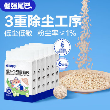倔强尾巴原味100%纯豆腐猫砂 无尘除臭低敏瞬吸结团 敏感猫奶香4.6斤*6袋