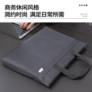 得力(deli)63788 加厚大容量商务拉链手提公文包 文件包事务包办公手提包会议包资料收纳包电脑包 灰色 1个装
