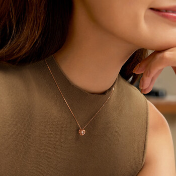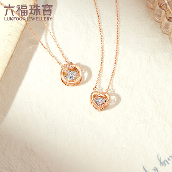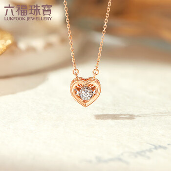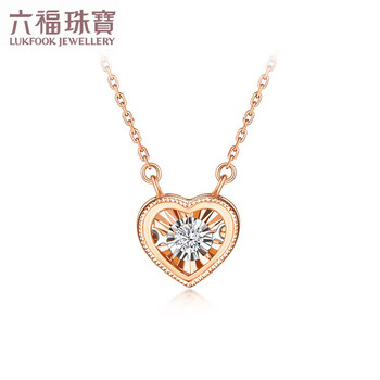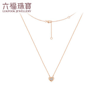 六福珠宝 钻石项链跳动的心18K金套链生日礼物女 共3分/分色18K/约2.02克