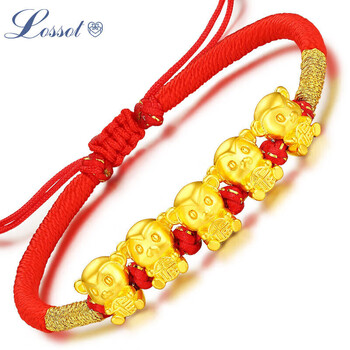 Lossot生日礼物本命年十二生肖猴足金五福猴黄金转运珠手链5D硬金猴