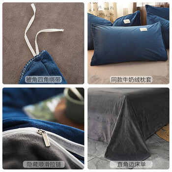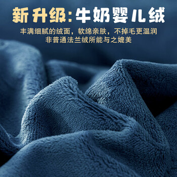 恒源祥牛奶绒秋冬四件套1.5/1.8米床单被套200*230cm蓝色