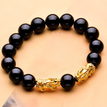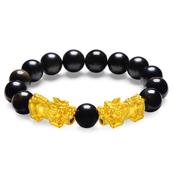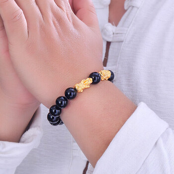 蒂蔻(Tico)招财貔貅黄金手链男足金转运珠黑曜石手串3D硬金饰品生日礼物