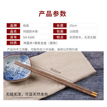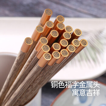 拾画 鸡翅木筷子实用高档家庭酒店筷子10双装 圆顶金福款25cm SH-6280