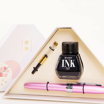 白金钢笔PGB-1000富士山盒绘套装彩色铝合金钢笔/墨水笔铱金粉杆F尖细字 樱花