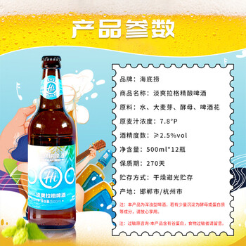 海底捞拉格 500ml*12瓶 低温发酵 精酿啤酒 整箱装踏春送礼
