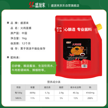 盛源来火鸡面酱1kg*1袋