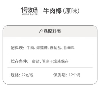 一号牧场牛肉棒原味 22g*7袋 0添加儿童零食孕妇高蛋白营养早餐零食棒