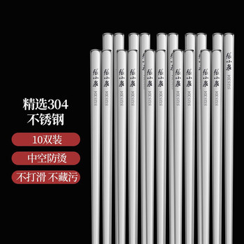 张小泉 冰洁系列304全不锈钢筷子10双装礼盒装可高温消毒长23.5cm