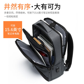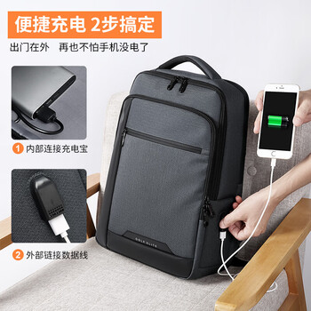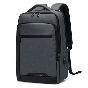 高尔夫GOLF背包男士大容量15.6英寸电脑双肩包男学生书包USB接口多隔层商务休闲旅行出差背包 深灰配黑