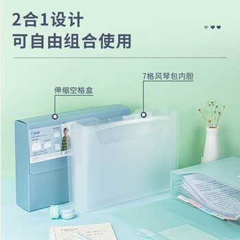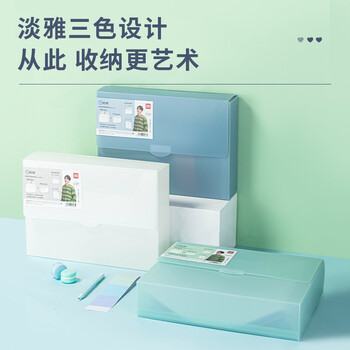 得力(deli)72770 源源得力多功能文件收纳盒 可伸缩空格盒资料盒档案办公室储物盒粘扣风琴包 蓝色 6个装