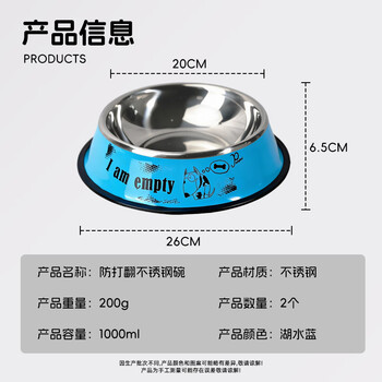 萌嘟星宠不锈钢狗碗狗食盆防打翻狗粮喂食盆中大型犬喝水饮水碗1000ml*2