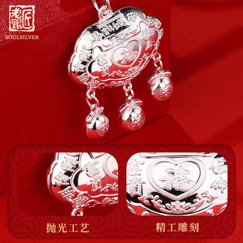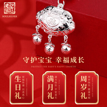 老银匠999足银长命锁婴儿银锁送宝宝满月周岁礼物长命富贵福字银锁