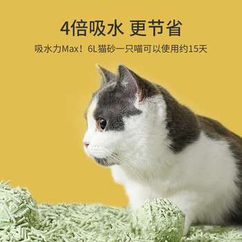 京东京造 绿茶味豆腐猫砂2.6kgx4包箱装2.0颗粒无尘结团除臭吸水可冲厕所